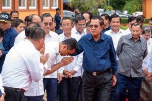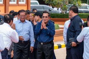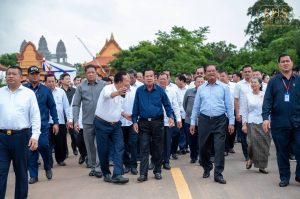 សម្ដេចអគ្គមហាសេនាបតីតេជោ ហ៊ុន សែន ប្រធានព្រឹទ្ធសភានៃព្រះរាជាណាចក្រកម្ពុជា អញ្ជេីញចុះពិនិត្យច្រកទ្វារព្រំដែនអន្តរជាតិម៉ឺនជ័យ ស្ថិតក្នុងភូមិម៉ឺនជ័យ ឃុំក្របៅ ស្រុកកំចាយមារ ខេត្តព្រៃវែង